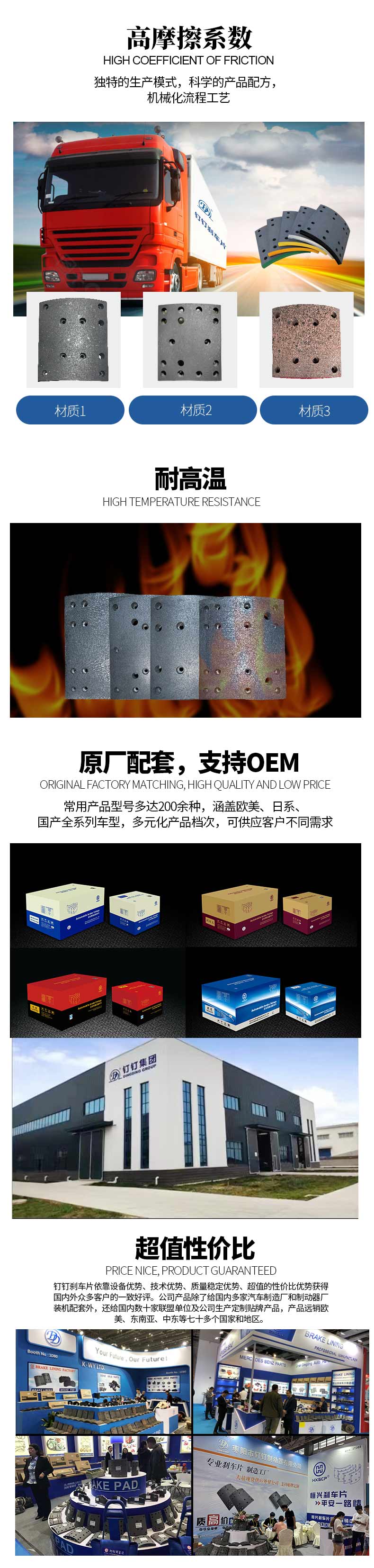 专业刹车片制造工厂,支持代工,OEM贴牌,外贸公司代工生产
